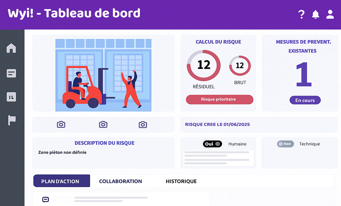 Le Pack Basic de la suite logicielle Wyi!® repositionne le Document Unique au cœur de votre stratégie de prévention, non comme une contrainte réglementaire, mais comme un véritable levier d’action. Grâce à l’intelligence artificielle intégrée, il rend l’évaluation des risques professionnels accessibles à tous, y compris aux non-experts.